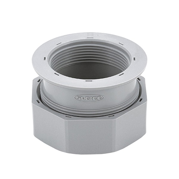40Aトラップに40A塩ビ管を接続できます。三角リングとナットを使用し50Aトラップに40A塩ビ管を接続できます。