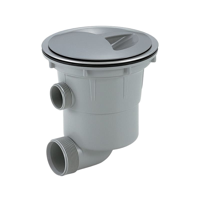 シンク用の浅型排水トラップです。横引きタイプのため、シンク下スペースを有効利用することができます。浅カゴ仕様のため、生ゴミが大量にたまる心配もありません。防臭器の取外しができます。止水プレート付きです。※蓋と菊割れゴムは付属しません。●封水深:50mm以上●適合排水口外径:φ180mm●接続部:G2●オーバーフロー:なし