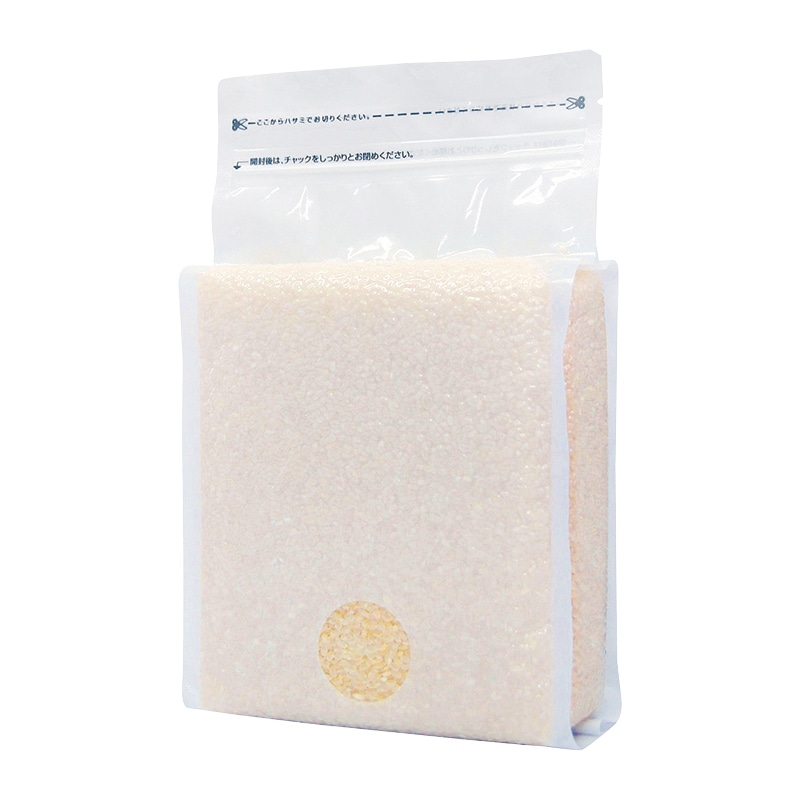ラミ素材を使った真空スマートチャック袋の米袋です。真空包装用のスタンドチャック袋です。●入数:500枚