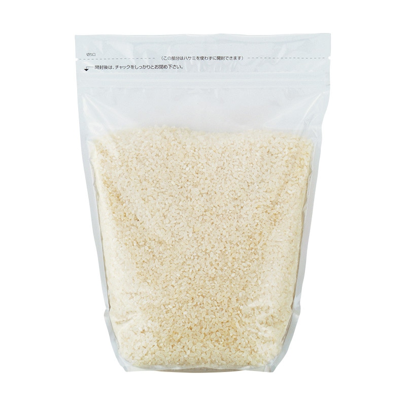 ハサミを使わず開封できるタイプで、開封後に便利なチャック付き。上からお米を入れてシールするタイプです。ラベル貼付けなど自由にアレンジできる無地タイプ。●入数:500枚