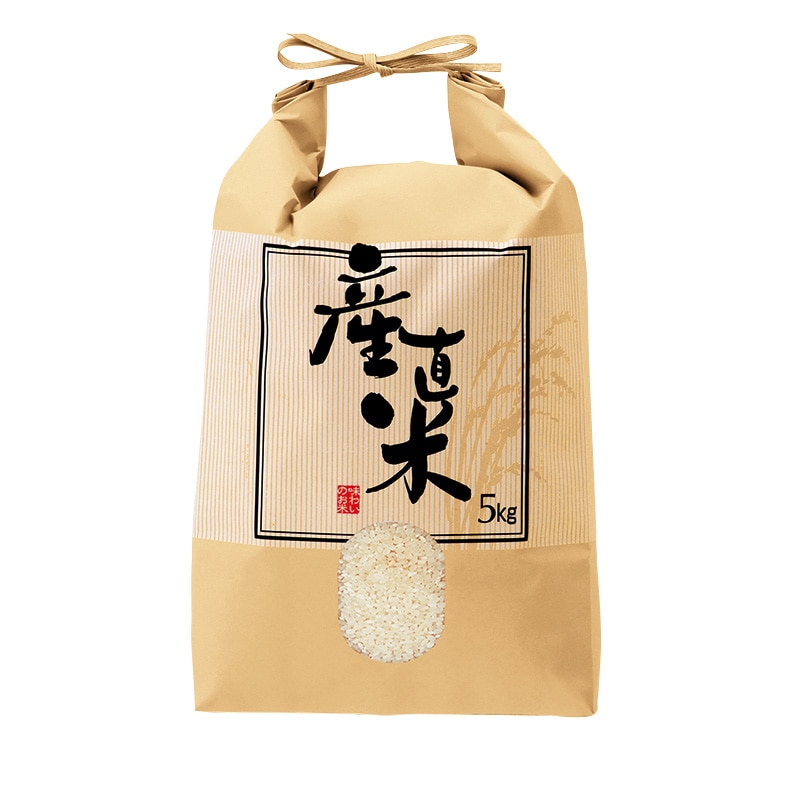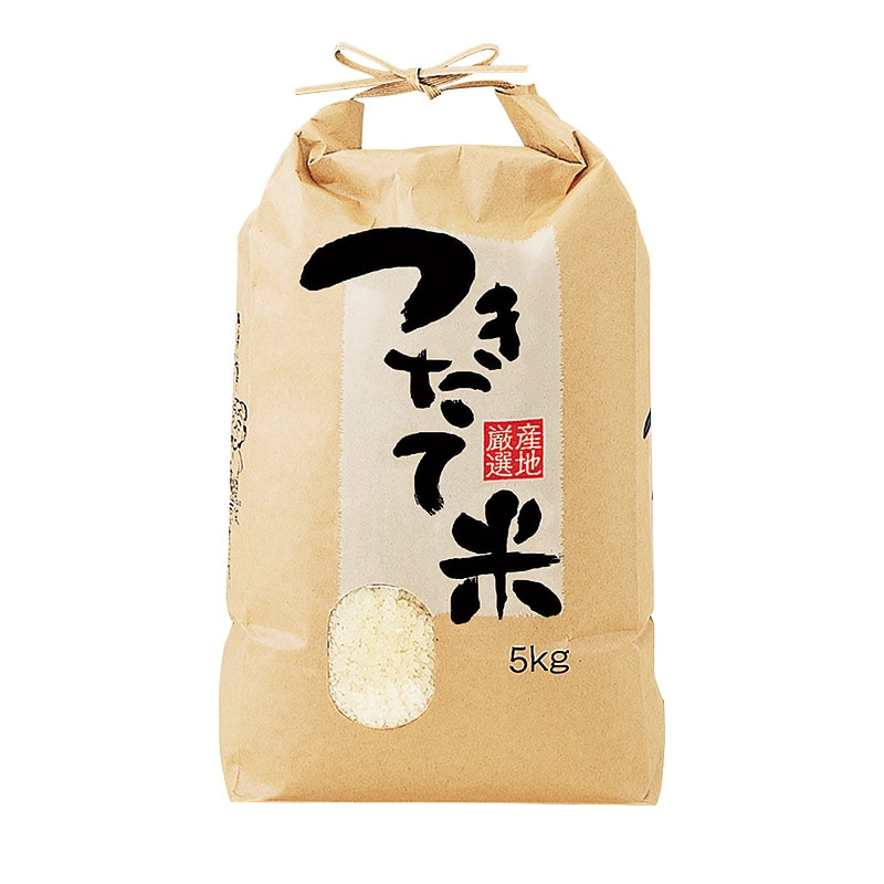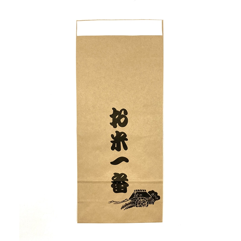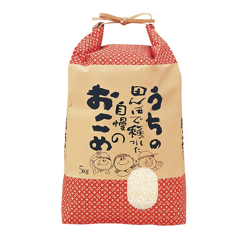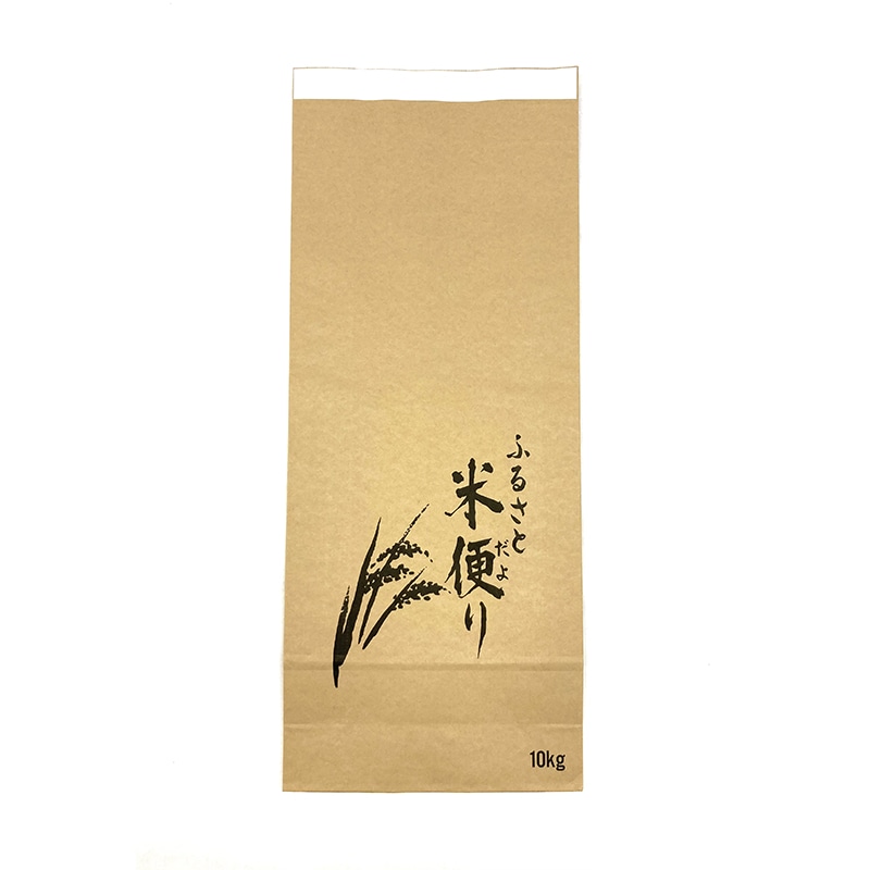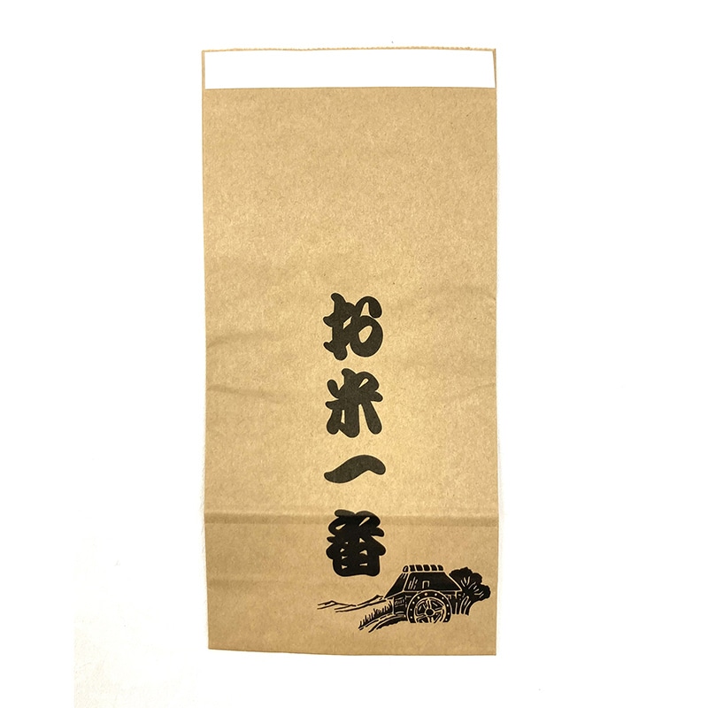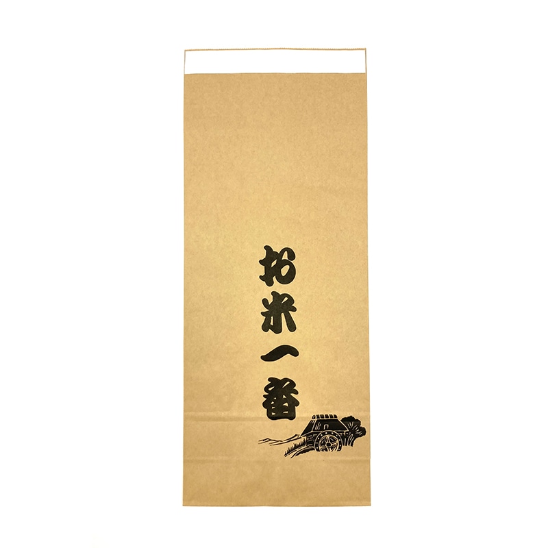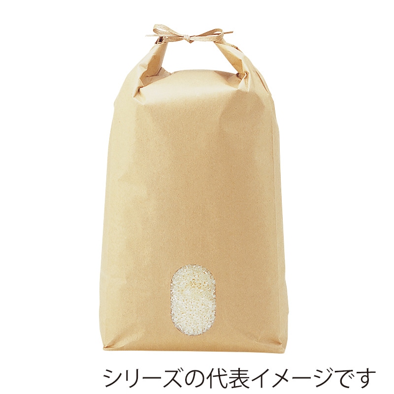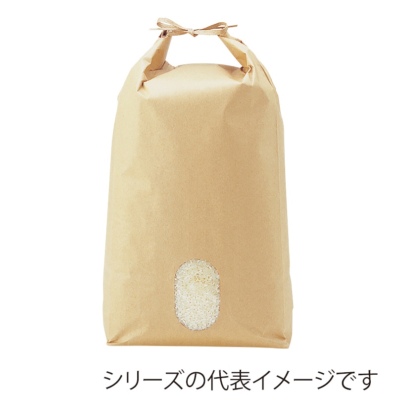 直売所や産直での利用に便利な、紐付クラフト米袋です。特定の銘柄が表示されていない、便利な「銘柄なし」の米袋です。紐を結んで封をするタイプで、包装機械不要。窓付き。