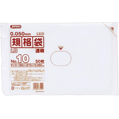 ジャパックス LD規格袋 500シリーズ 13号 260×380mm 厚口タイプ L513 50枚/袋(ご注文単位1袋)【直送品】