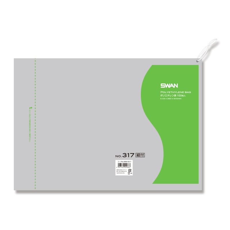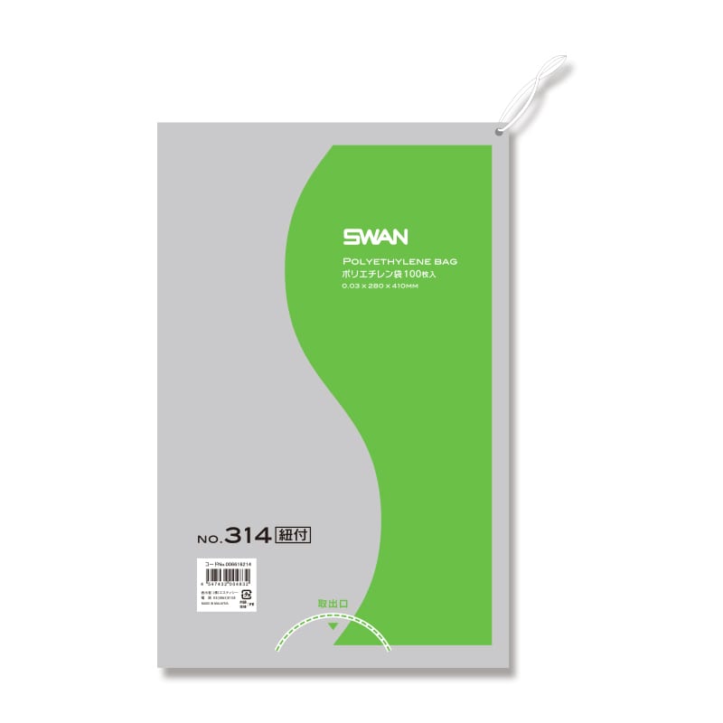 SWAN 規格ポリ袋 スワンポリエチレン袋 0.03mm厚 No.313(13号) 紐付 100枚/袋
