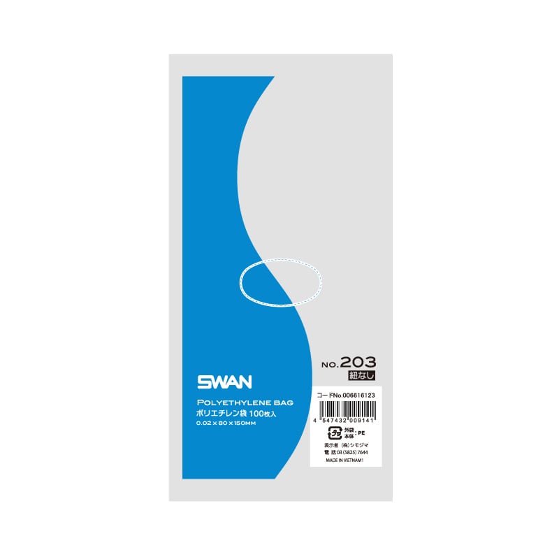 SWAN 規格ポリ袋 スワンポリエチレン袋 0.02mm厚 No.213(13号) 紐付き 100枚/袋