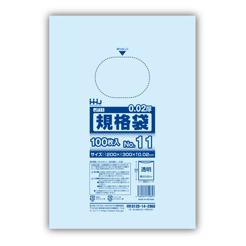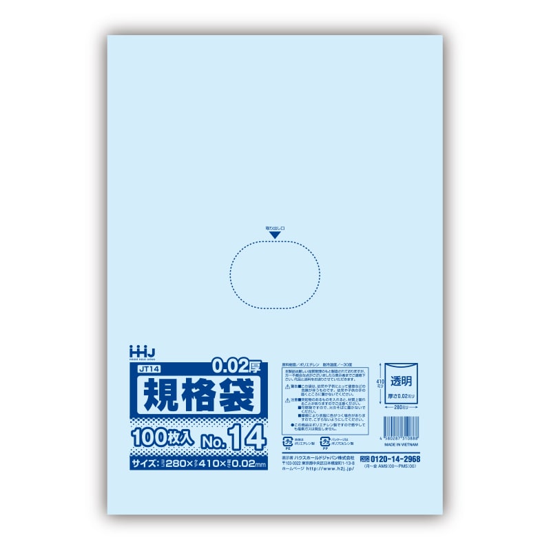 ハウスホールドジャパン ポリ規格袋 0.02mm厚 13号 JT13 透明 1冊(ご注文単位60冊)【直送品】