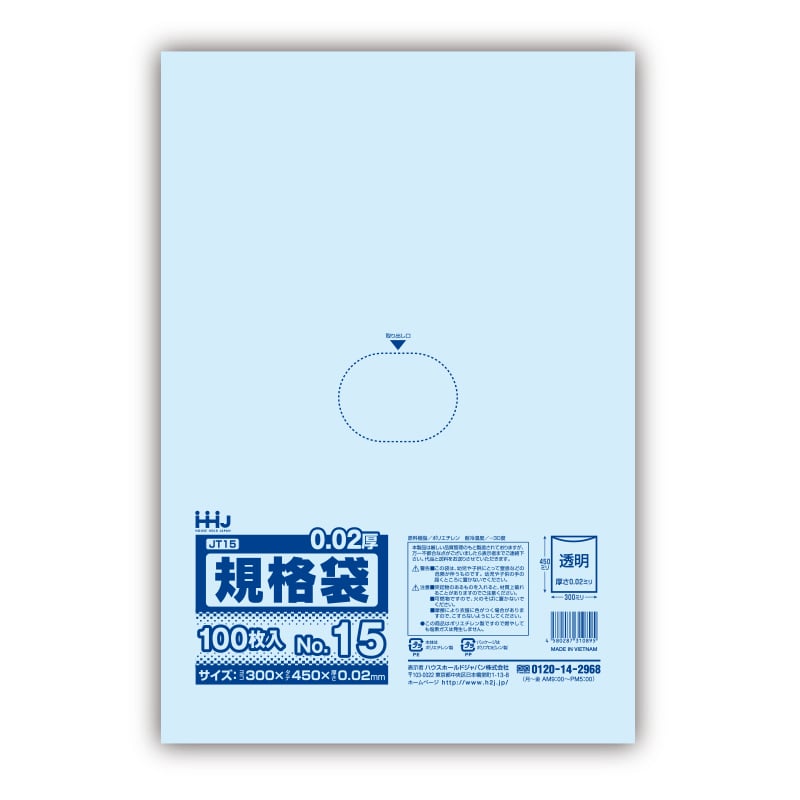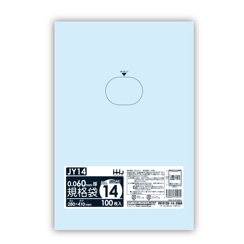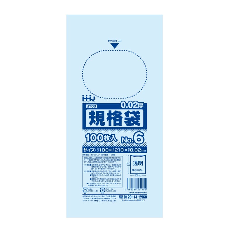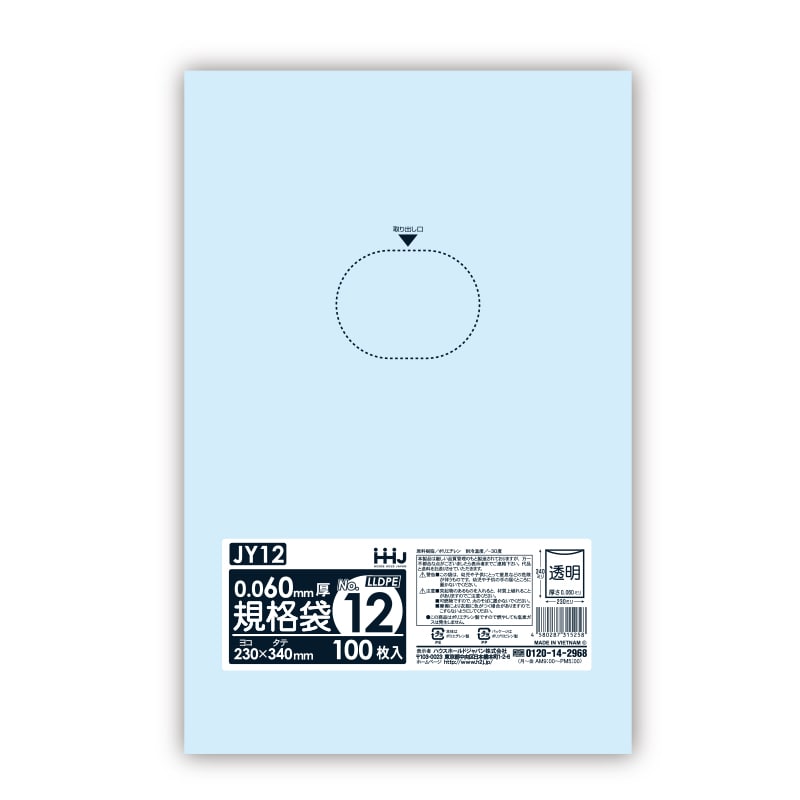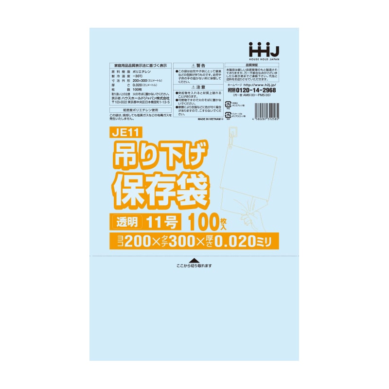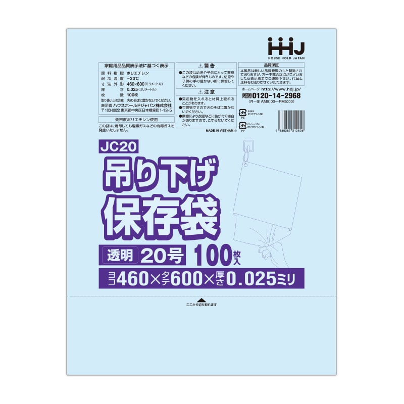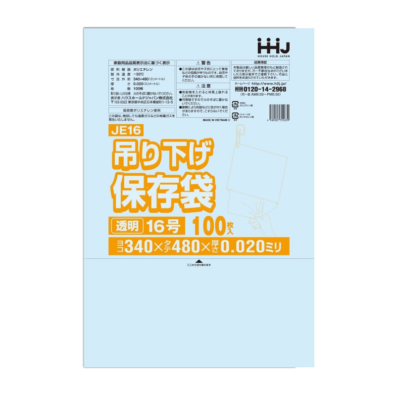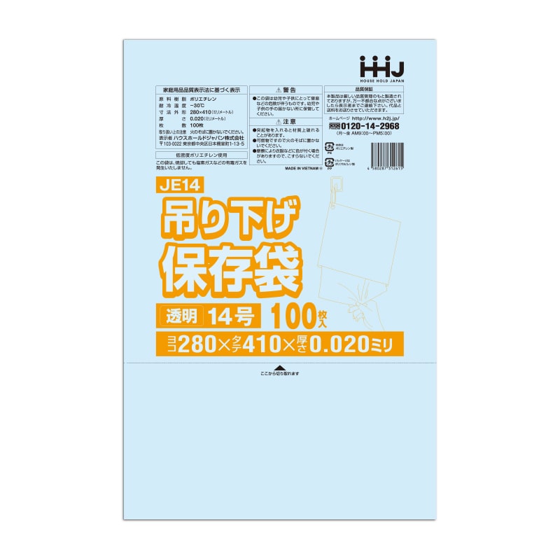 ハウスホールドジャパン 規格袋 13号 吊り下げタイプ JE13 透明 0.02 100枚入 1束(ご注文単位60束)【直送品】