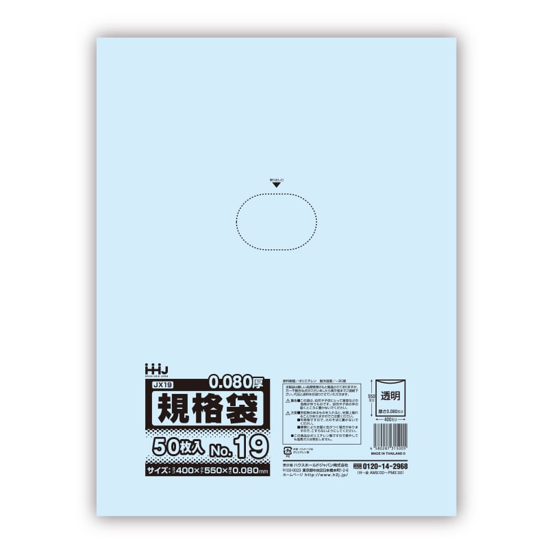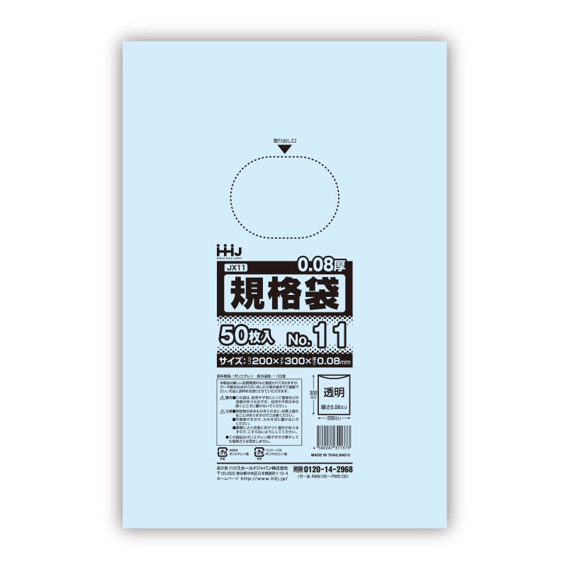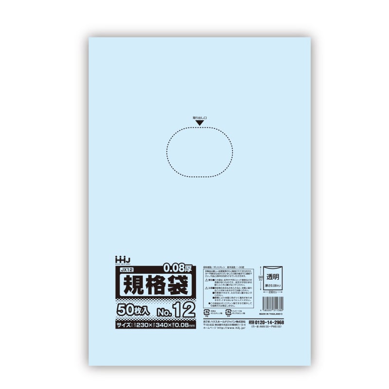 ハウスホールドジャパン ポリ規格袋 0.08mm厚 13号 JX13 透明 1冊(ご注文単位20冊)【直送品】