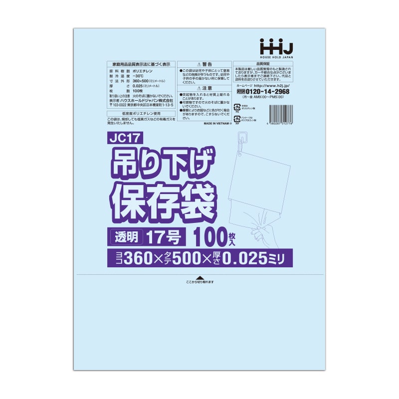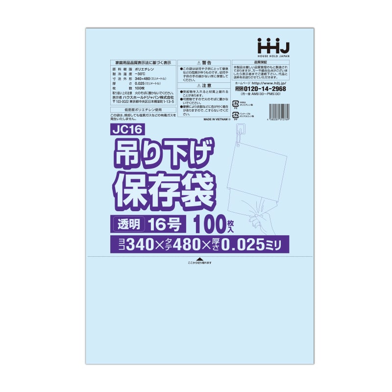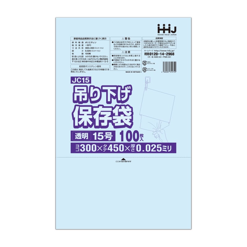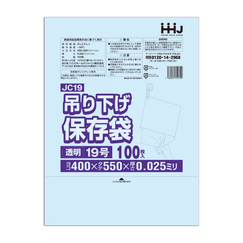 ハウスホールドジャパン 規格袋 13号 吊り下げタイプ JC13 透明 0.025 100枚入 1束(ご注文単位40束)【直送品】