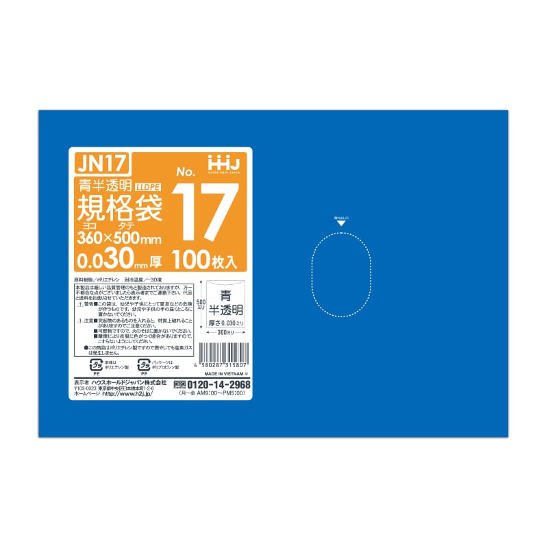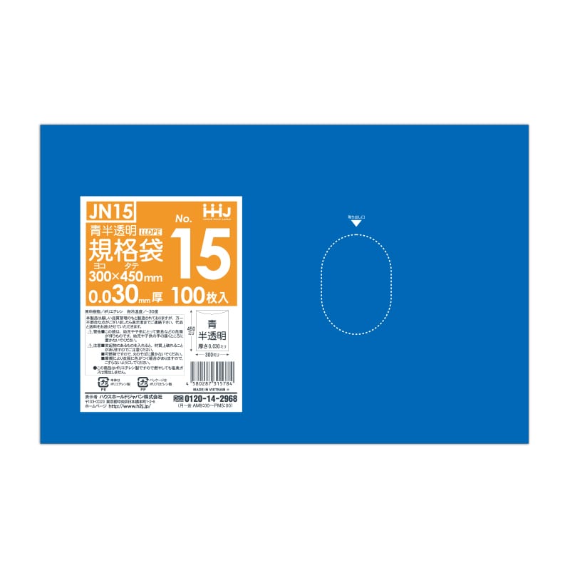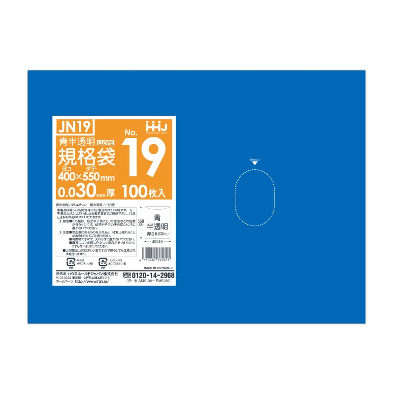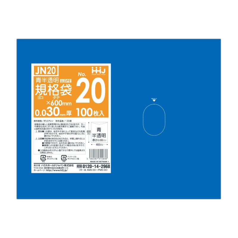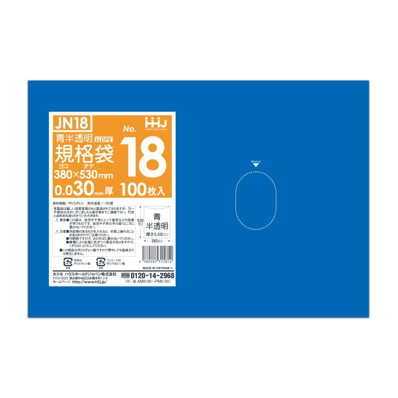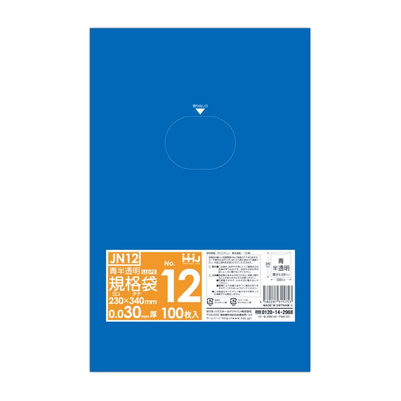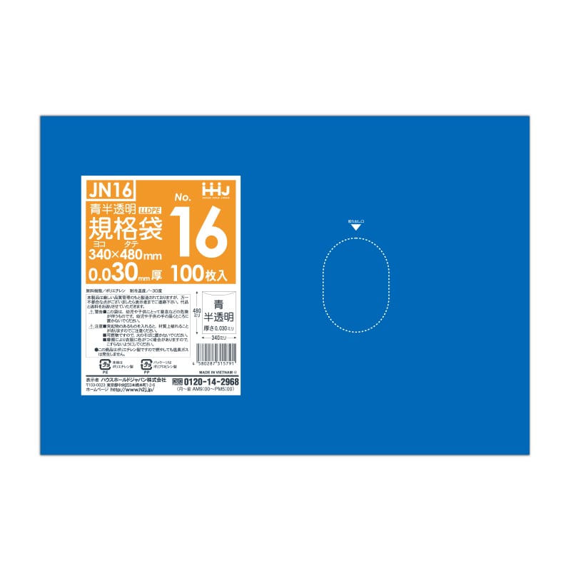 ハウスホールドジャパン 規格袋 13号 JN13 青半透明 0.03 100枚入 1束(ご注文単位30束)【直送品】
