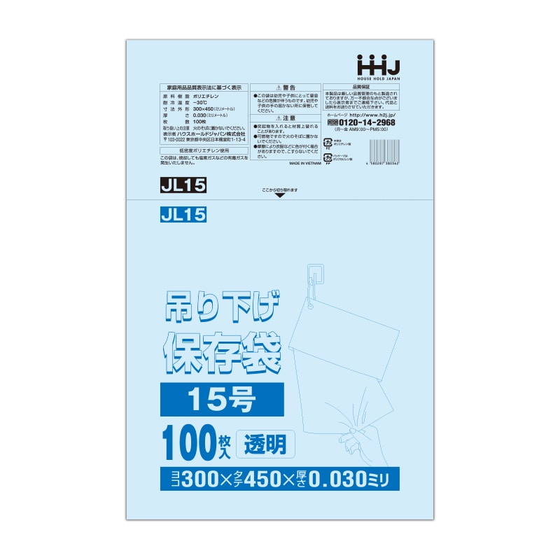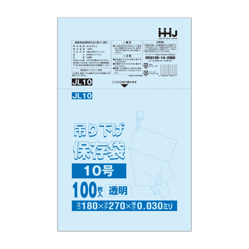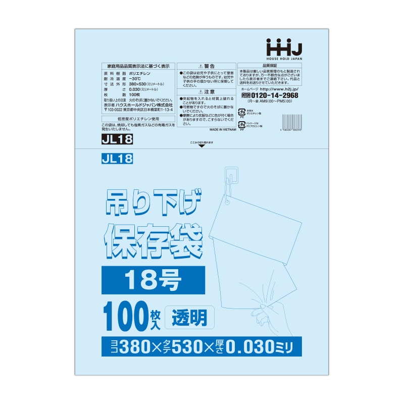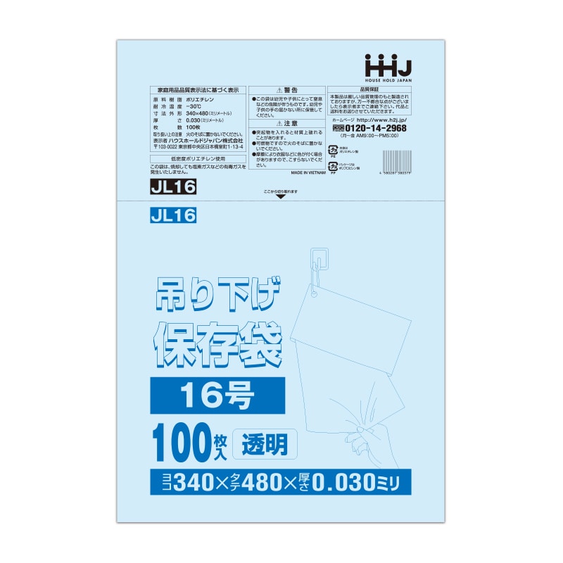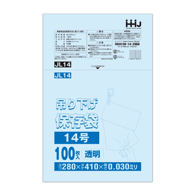 ハウスホールドジャパン 吊り下げ規格袋 13号 JL13 透明 0.03 100枚入 1束(ご注文単位30束)【直送品】