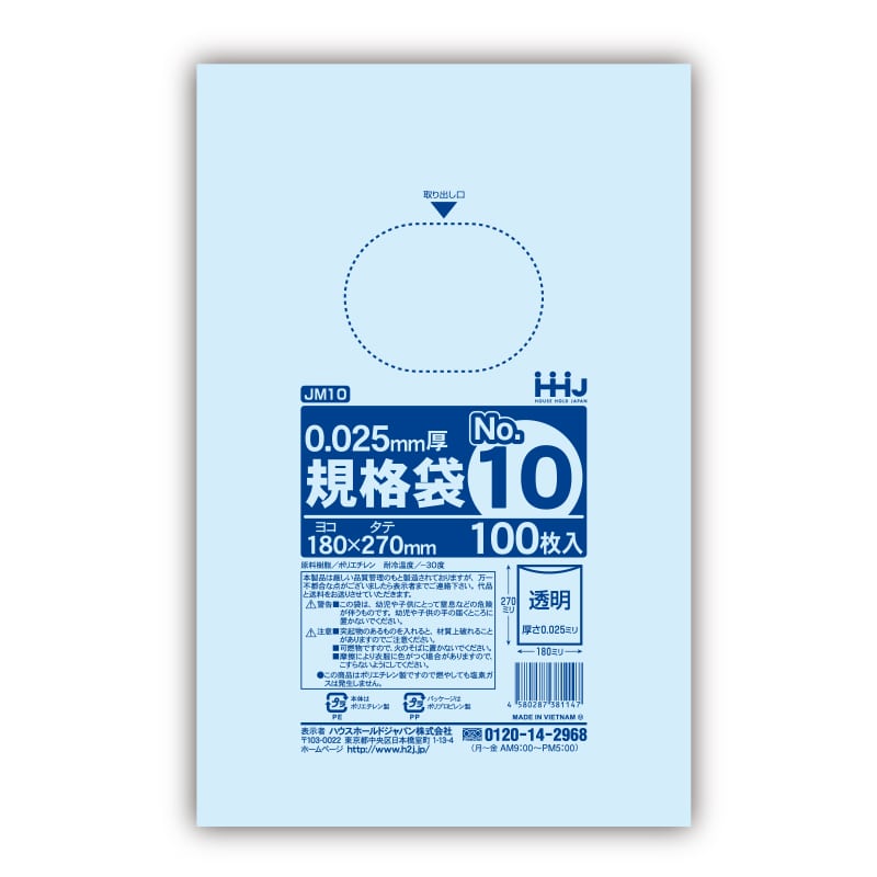 ハウスホールドジャパン ポリ規格袋 0.06mm厚 13号 JY13 透明 1冊(ご注文単位10冊)【直送品】