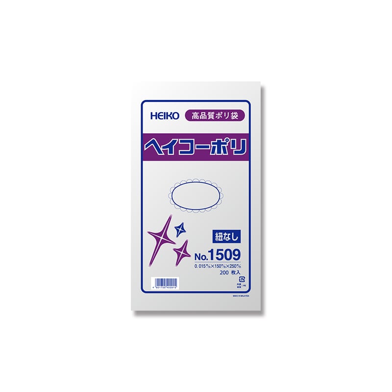 015JIS規格内の厚みを保ち薄肉化を図ったポリ袋です。ヘイコーポリの中で、もっとも薄いシリーズです。吊り下げ用の紐は付いておりません。食品衛生法規格基準適合商品です。●入数:200枚