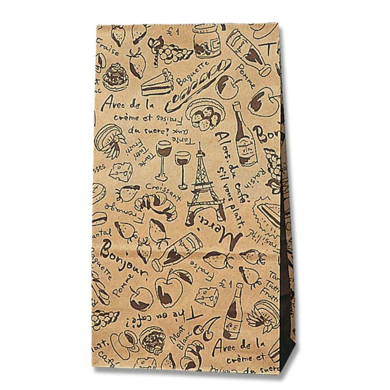 お菓子屋さん、パン屋さんを連想させるデザイン一杯の紙袋です。まさに製菓製パン業界でご使用ください。●入数:100枚
