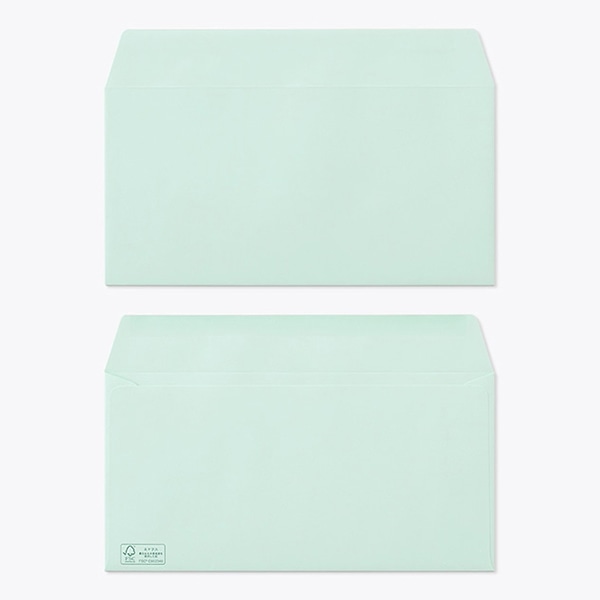 パステル調のソフトな色合いが特徴のカラー封筒です。フラップが予め折れているタイプです。A4三折用、定形内。森林認証紙を使用しています。●入数:1000枚