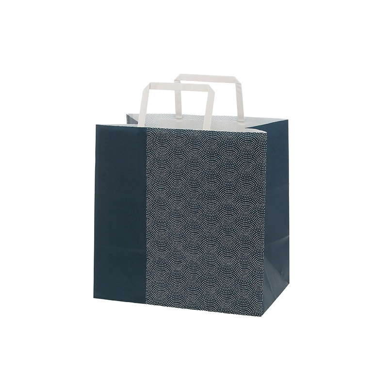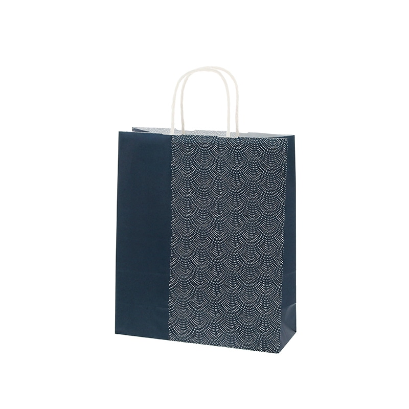 日本の伝統和紙をモチーフにデザインしました。落ち着いた和風のデザインに仕上がっています。小型ながらマチ幅が広めの人気サイズです。和菓子や和雑貨、仏事等にお勧めです。●手紐:平紐白●入数:50枚