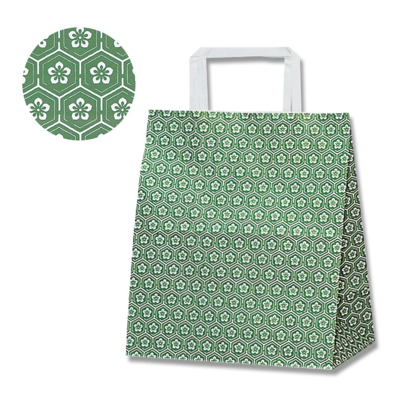 HEIKO 紙袋 H25チャームバッグ S2(平手) 梅小紋 緑 50枚/袋