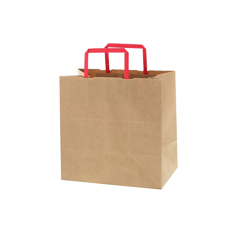 もっとも汎用性の高い、プレーンなクラフトの手提げ袋です。未使用時には紐が飛び出ていないため、在庫スペースにやさしい平紐タイプです。幅と高さがほぼ正方形のオールマイティモデル。●手紐:平紐未晒●入数:50枚