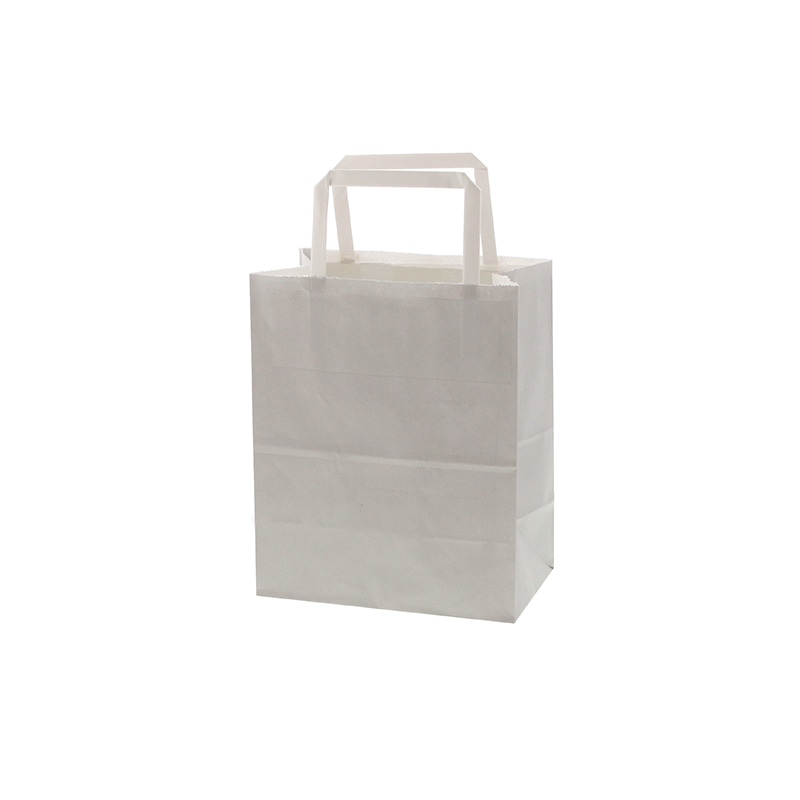 もっとも汎用性の高い、プレーンな白無地の手提げ袋です。小型ながらマチ幅が広めの人気サイズです。表面に艶のない、晒クラフト紙を使用しております。未使用時には紐が飛び出ていないため、在庫スペースにやさしい平紐タイプです。●手紐:平紐白●入数:50枚