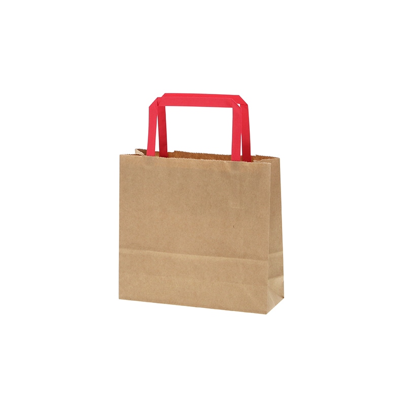 手紐を赤色にした、クラフト紙の手提げ袋です。ナチュラル感はそのままでインパクトがあります。さまざまな用途にご利用いただけます。コンパクトながらマチはゆったり。縦置きしたくない箱ものの収納に。紐は外に出た状態で包装してあります。●手紐:平紐(赤)●入数:50枚
