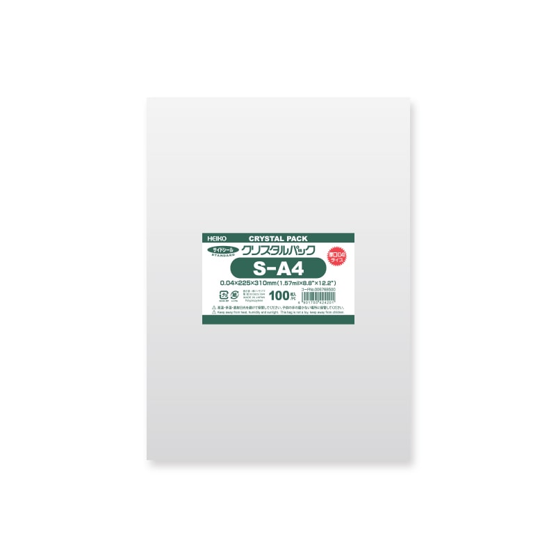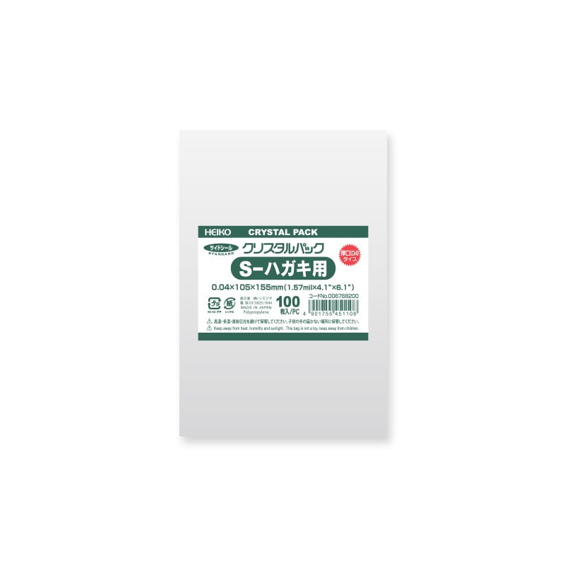 つやがあり、透明感抜群の国産高級OPPフィルムを使用したクリスタルパックシリーズ。すべりが良く作業効率もバツグン。袋の両側を熱圧着して製造する為、のりしろが発生しないので中身が綺麗に見えます。S(サイドシール)はテープが付いていない、最もスタンダードなシリーズです。食品衛生法規格基準適合商品です。●入数:100枚