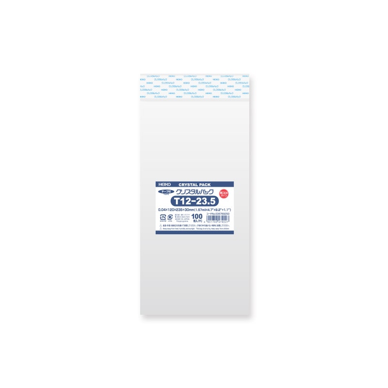 つやがあり、透明感抜群の国産高級OPPフィルムを使用したクリスタルパックシリーズ。すべりが良く作業効率もバツグン。袋の両側を熱圧着して製造する為、のりしろが発生しないので中身が綺麗に見えます。すばやく封かんできるテープ付きタイプです(フラップの部分に糊がついています)食品衛生法規格基準適合商品です。●入数:100枚