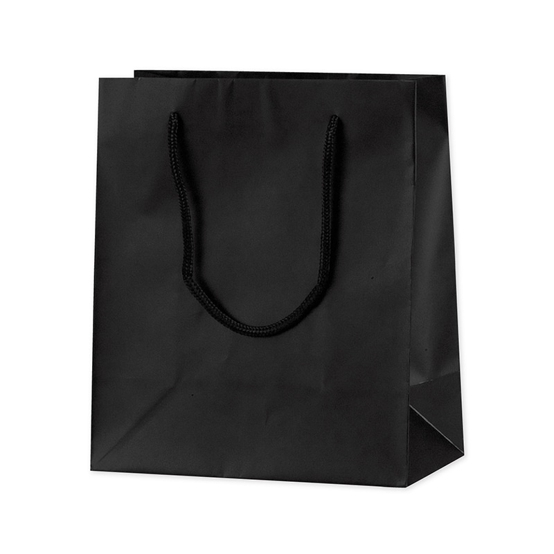 落ち着いた品のある上質な手提げ袋です。持ち手はしっかりとしたPP製丸紐を使用。表面にツヤ消しのさらりとしたマット加工が施されています。格式・フォーマルなイメージのブラックは高級店はもとより仏事用としても適しています。●表面マットPP加工●底ボール付