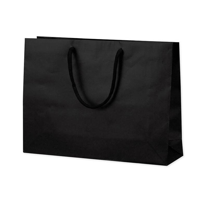 落ち着いた品のある上質な手提げ袋です。持ち手はしっかりとしたPP製丸紐を使用。表面にツヤ消しのさらりとしたマット加工が施されています。格式・フォーマルなイメージのブラックは高級店はもとより仏事用としても適しています。表面にツヤ消しのさらりとしたマット加工が施されています。格式・フォーマルなイメージのブラックは高級店はもとより佛用としても適しています。A3サイズのものを入れるのにちょうどいいサイズです。●表面マットPP加工●底ボール付