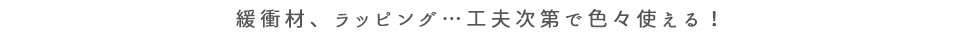 薄葉紙の使い道2つめ、緩衝材にはカラー薄葉紙がおすすめです。サイズは半切(788×545mm)と全判(1091×788mm)の2種類となっており、外袋はともに200枚・ケースは半切が2000枚、全判が1000枚の入数となっています。ツルツルとした表面に、スベスベの裏面、たくさんの量を使用する場合はこちらがおすすめです。カラーバリエーションが豊富なラインナップとなっており、女性向けの商品を扱うお店にはピンク・アイボリー・バイオレット、男性向けの商品を扱うお店にはブラウン・ブラックがおすすめです。