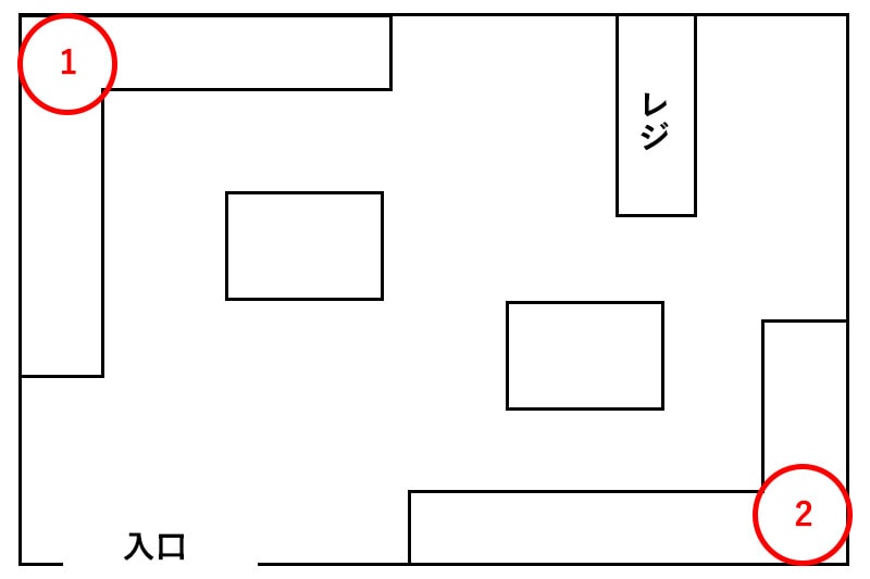 例えば下の図Aのようなレイアウトのお店だったとします。