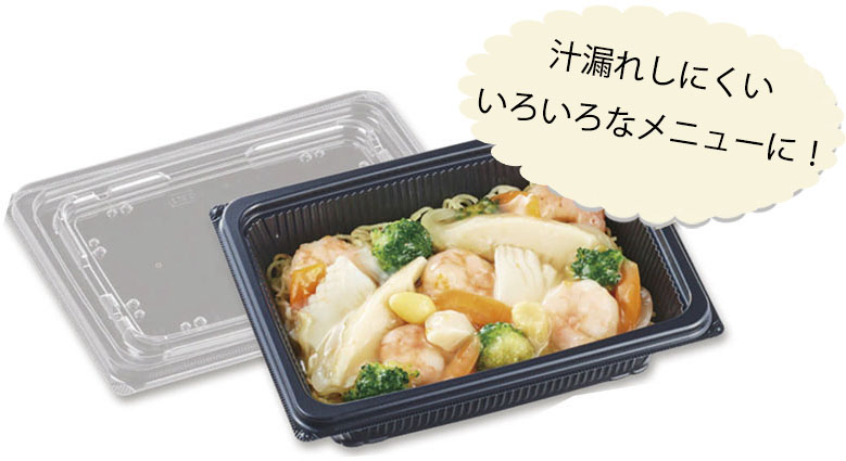 角型弁当容器です。盛付けやすく食べやすい深型設計!ごはんとおかずのセット商品、おかずの併せ買い等におすすめです。