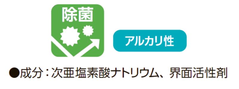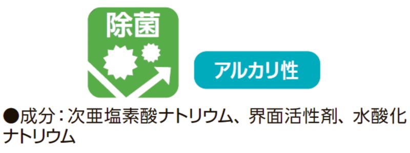 ●メリット・・・高いアルカリ性と酸素系漂白成分の組み合わせで、皮脂汚れ・血液・食品汚れ・雑菌分解に◎