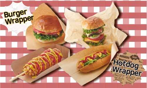 持ち帰りやデリバリーの際には欠かせないバーガー・ホットドック資材、この記事ではハンバーガー用の包み紙や耐油スリーブやサイズを解説!バーガー・ホットドック資材の選びの参考にご覧ください。