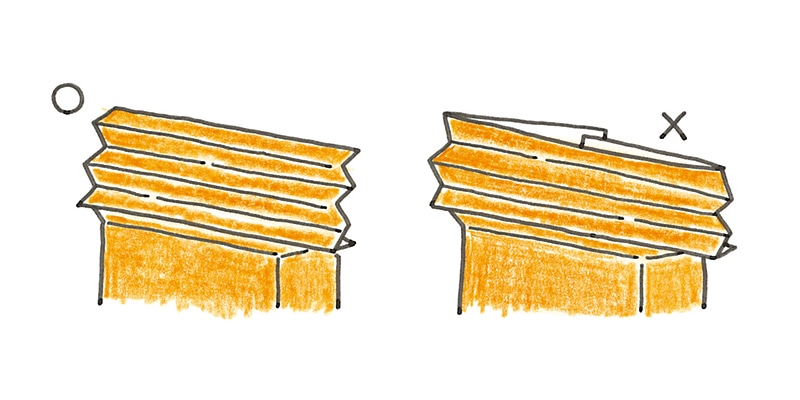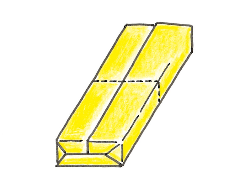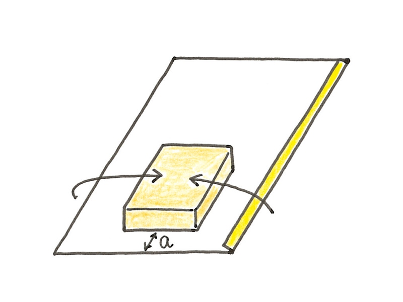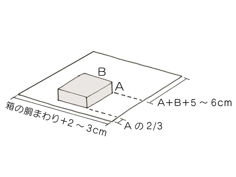 箱の底部に箱の厚みの2/3の量(a)を残し、両側から合わせ包みます。