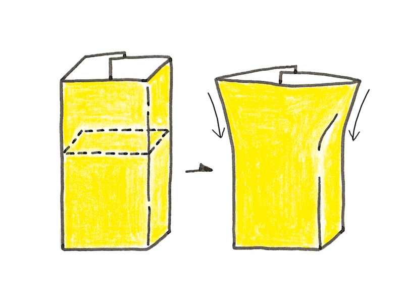 上部の口の前後を合わせ、箱の入っている位置まで両脇に折り目をつけます。