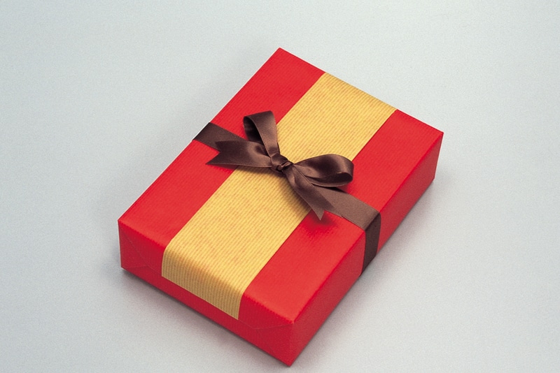 包装紙によっては両面が使えるようなものもあります。合わせ包みの合わせ目の部分を折り返して、両面を効果的に使いましょう。折り返す幅や角度をいろいろに変えてみてはいかがですか。