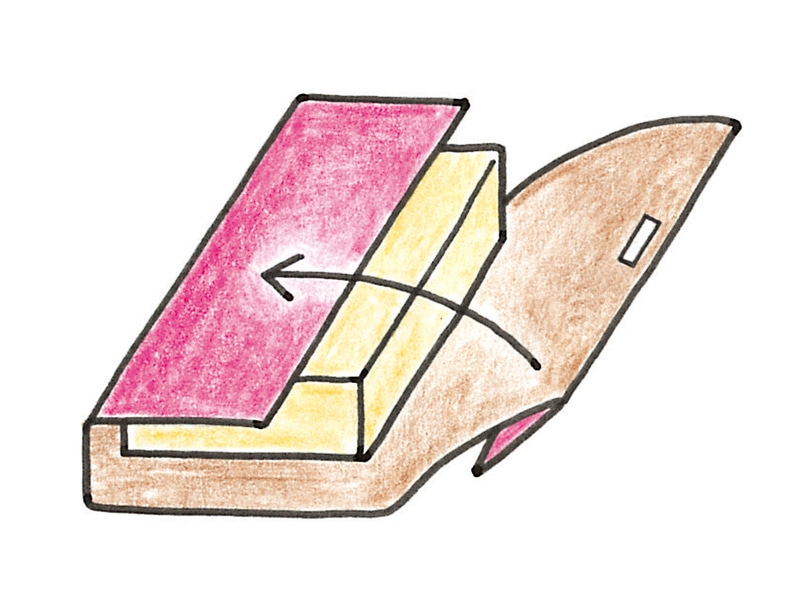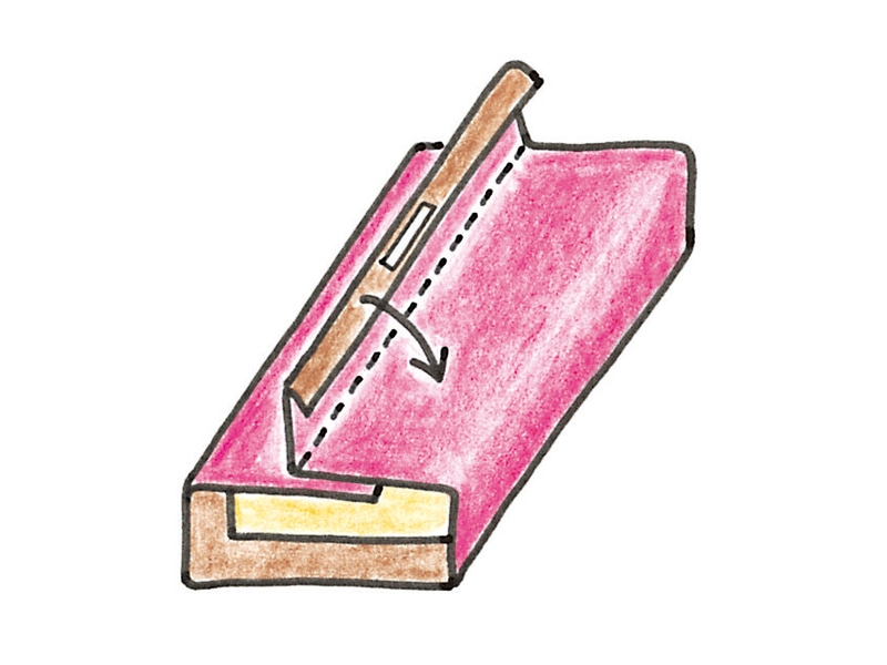 1cmほど折り込んだ中央に両面テープをつけ、本体部に接着します。