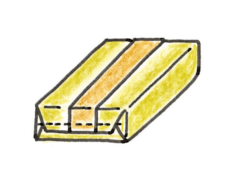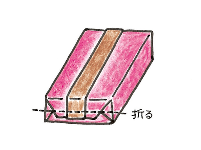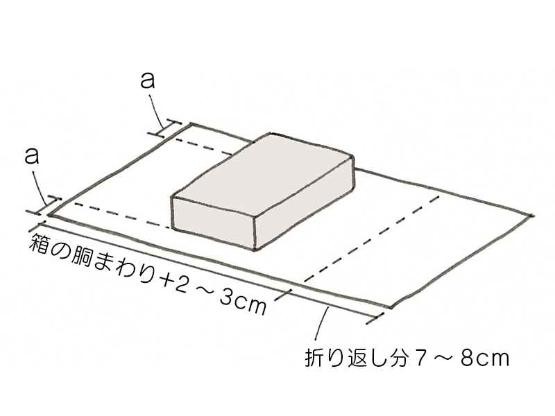 箱の周囲分に重なり分を加えた位置から折り返します。