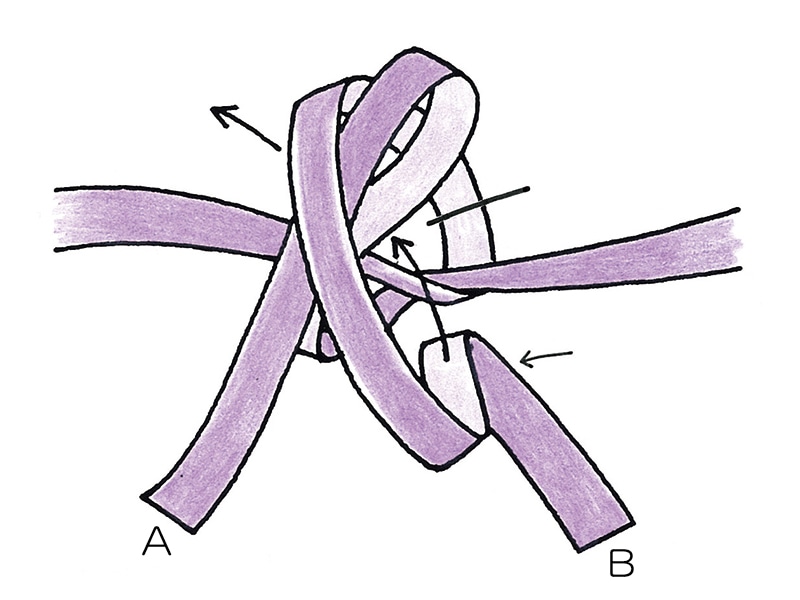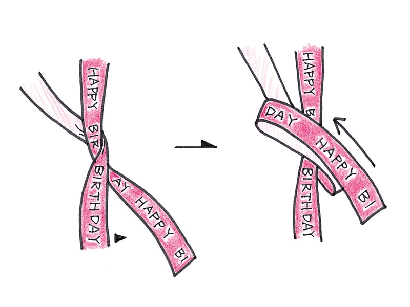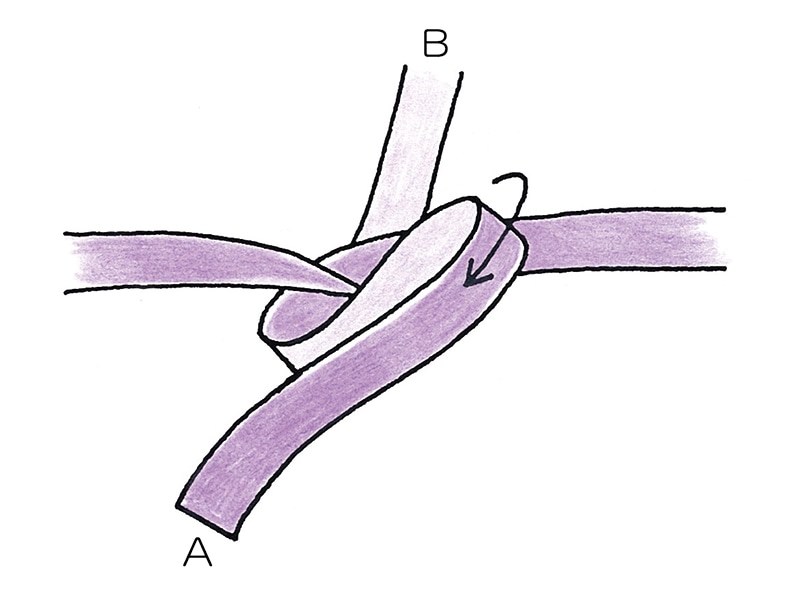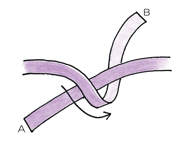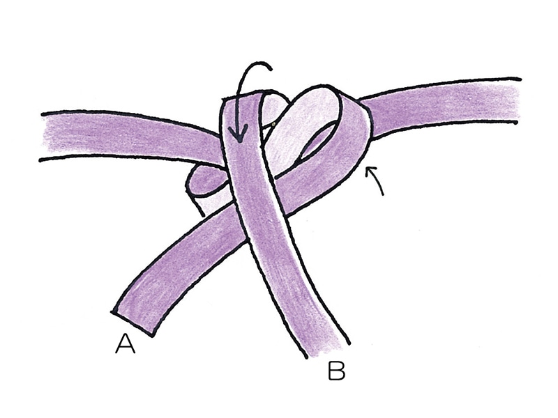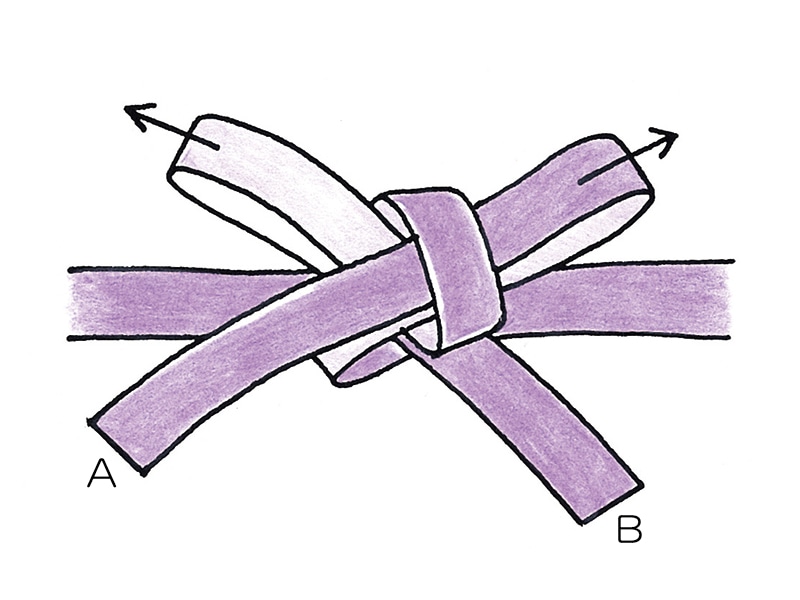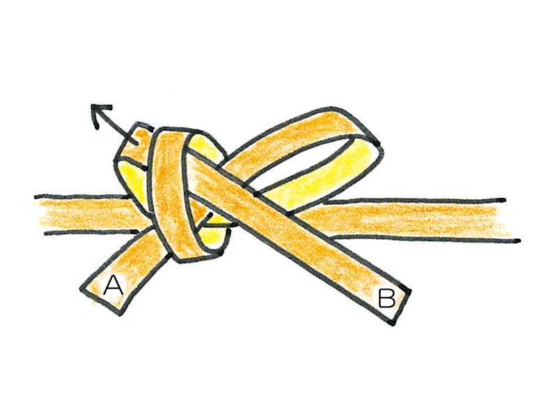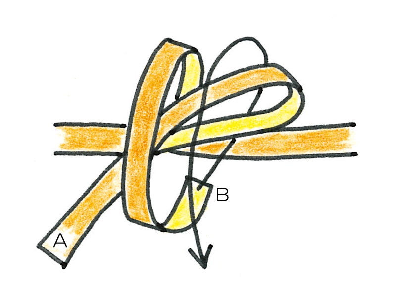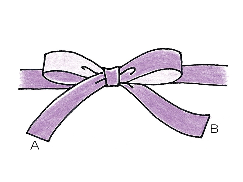 リボンAの輪とリボンBの輪を左右に引っぱります。