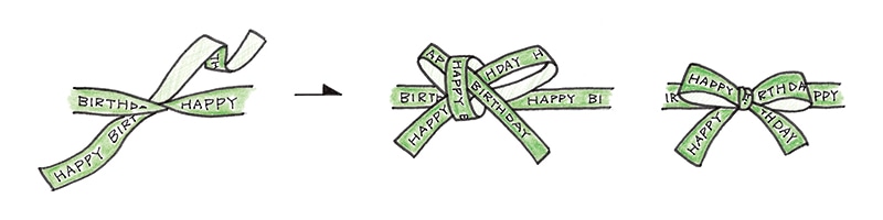 リボンの最もポピュラーな結び方です。あらゆるラッピングの基本となりますが、最終的な完成度を左右する最も重要な技術でもあります。