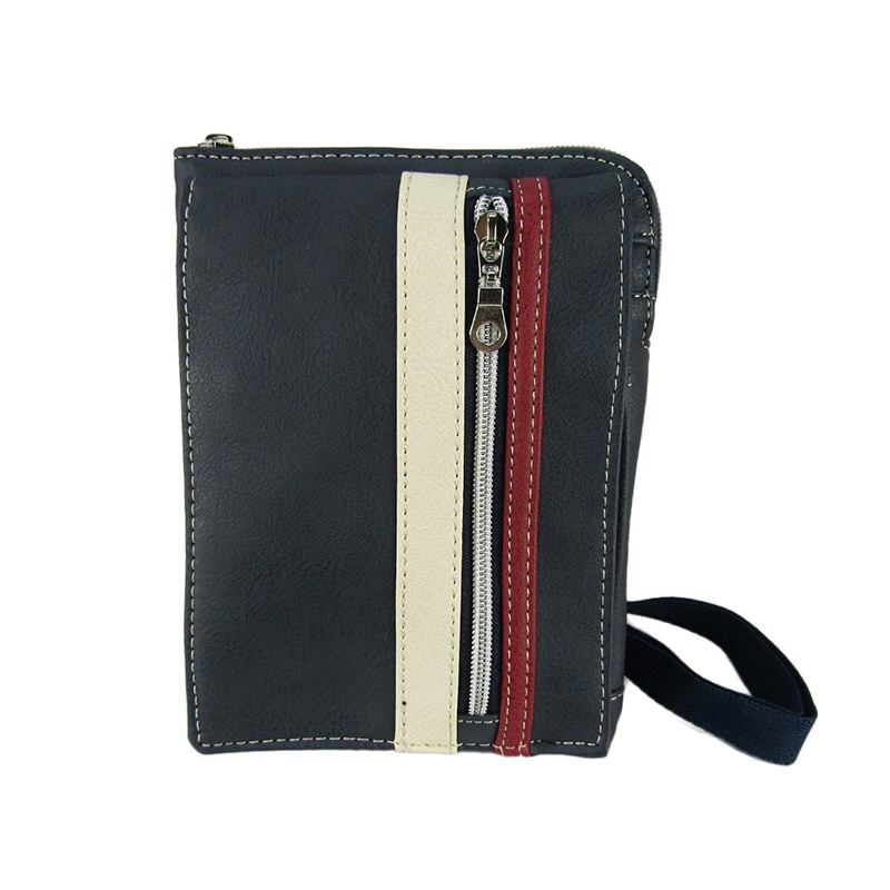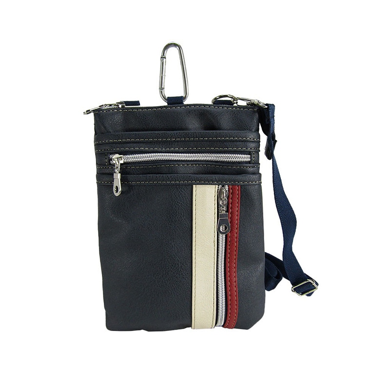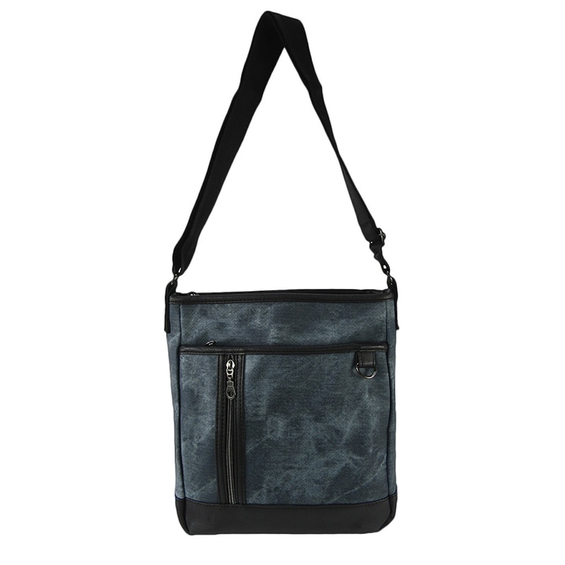 デニムの様なマーブル模様のフェイクレザーバッグです。正面には、5種類のポケットが付いていて、小物の管理に最適です。貴重品を身に着けられるので、海外旅行時や、手荷物としての管理にも最適です。タウンユースはもちろんのこと、通勤や通学にもおススメなアイテムです。
