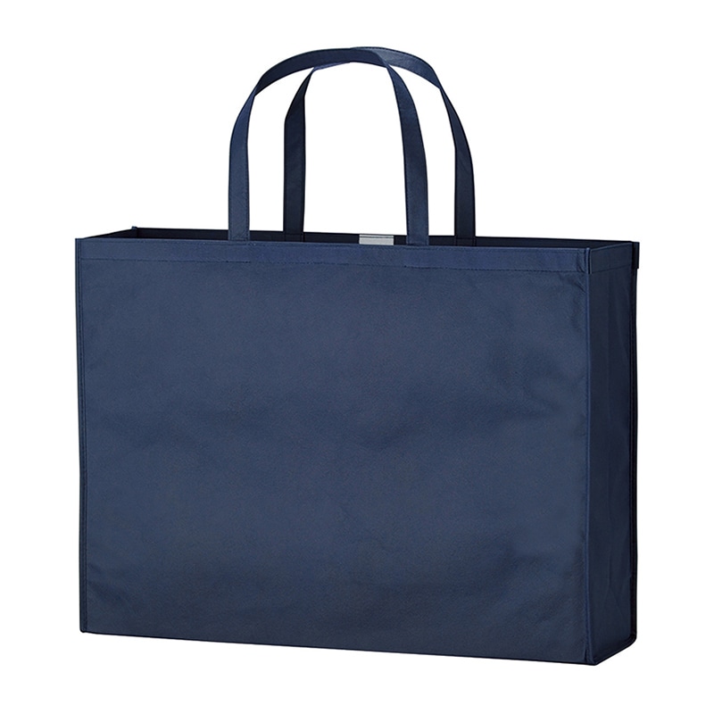 ビジネスシーンでも活用いただける、しっかりとした作りのマチ付きタイプの不織布バッグです。A4サイズのファイルが綺麗に入ります。ファイルに綴じた書類を持ち運んだり、紙の書類を仕分けしてそのまま収納庫に入れても。展示会等での資料配布に最適。マジックテープ付き。底ボール入り。※縫製品のため、表記のサイズや重量が実際の製品とは多少異なる場合があります。●容量:約7L●重さ:約40g/枚●持ち手:幅約2×長さ約35cm●入数:10枚