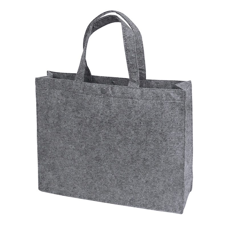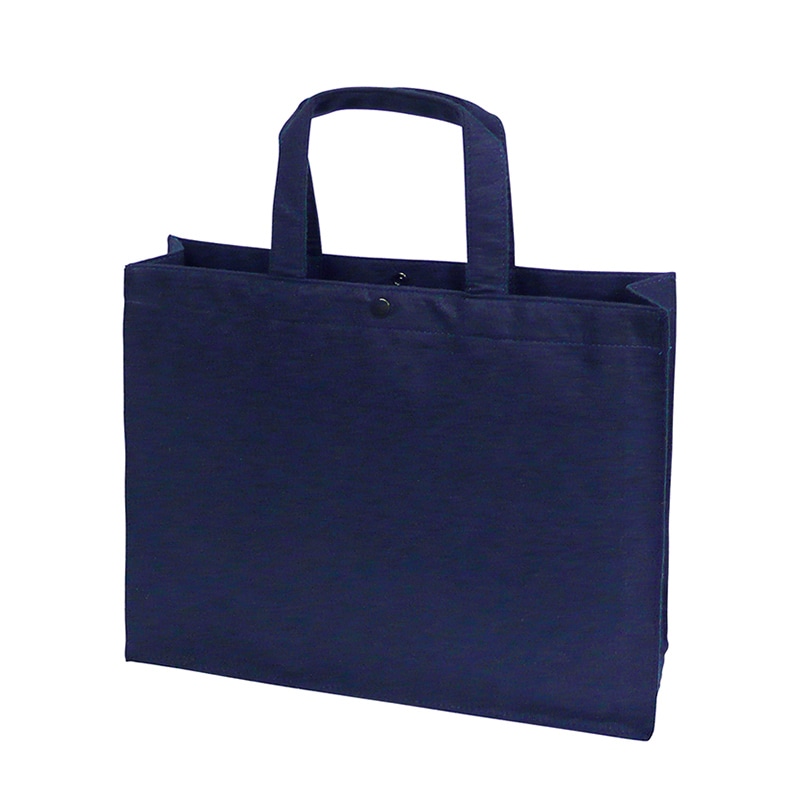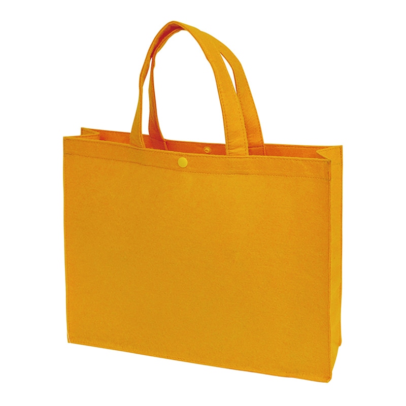 PP製フェルト生地を使用したトートバッグです。薄くて軽いのに丈夫で、暖かみのある素材感。A4ジャストサイズで、書類の出し入れがしやすい角底型。約8cmのマチでたくさんの書類もしっかり収納します。スナップボタンで口が留められます。※縫製品のため、表記のサイズや重量が実際の製品とは多少異なる場合があります。●容量:約7L●重さ:約72g/枚●持ち手:幅約2.5×長さ約35cm●入数:5枚