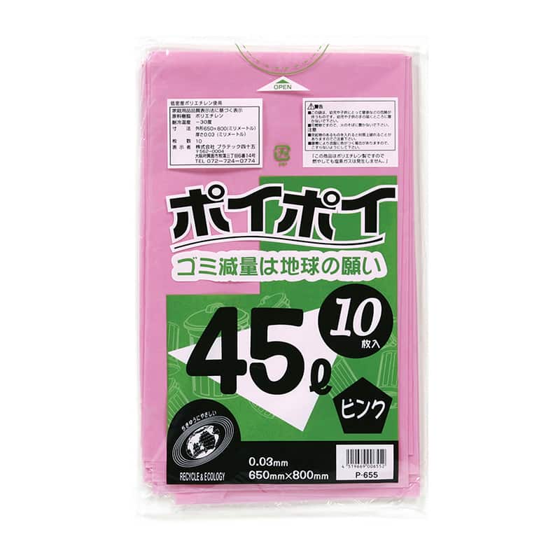 プラテック45 ゴミ袋 ポイポイ ピンク 0.03mm 45L 10枚入 P-655 1束(ご注文単位50束)【直送品】