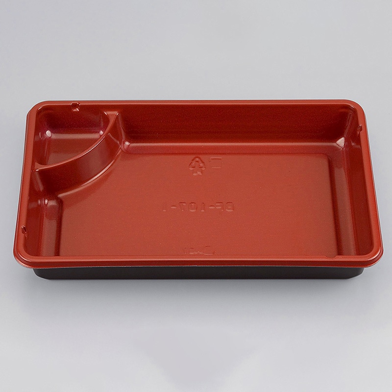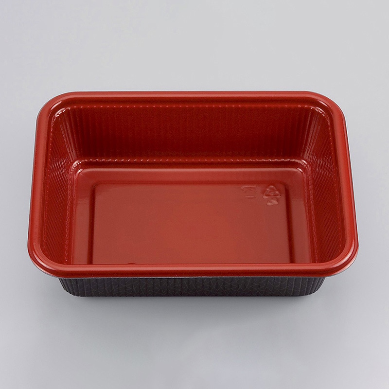 丼容器としてや中仕切を使うことで二段弁当で使用できる耐熱素材容器。対応蓋BF-211嵌合蓋。●電子レンジ:可●オーブン:不可●耐油性:有り●耐熱温度:105℃●ごはん:670g・中仕切使用時:360g●入数:50枚