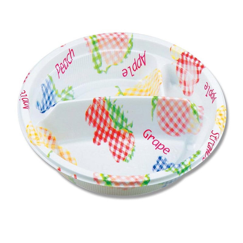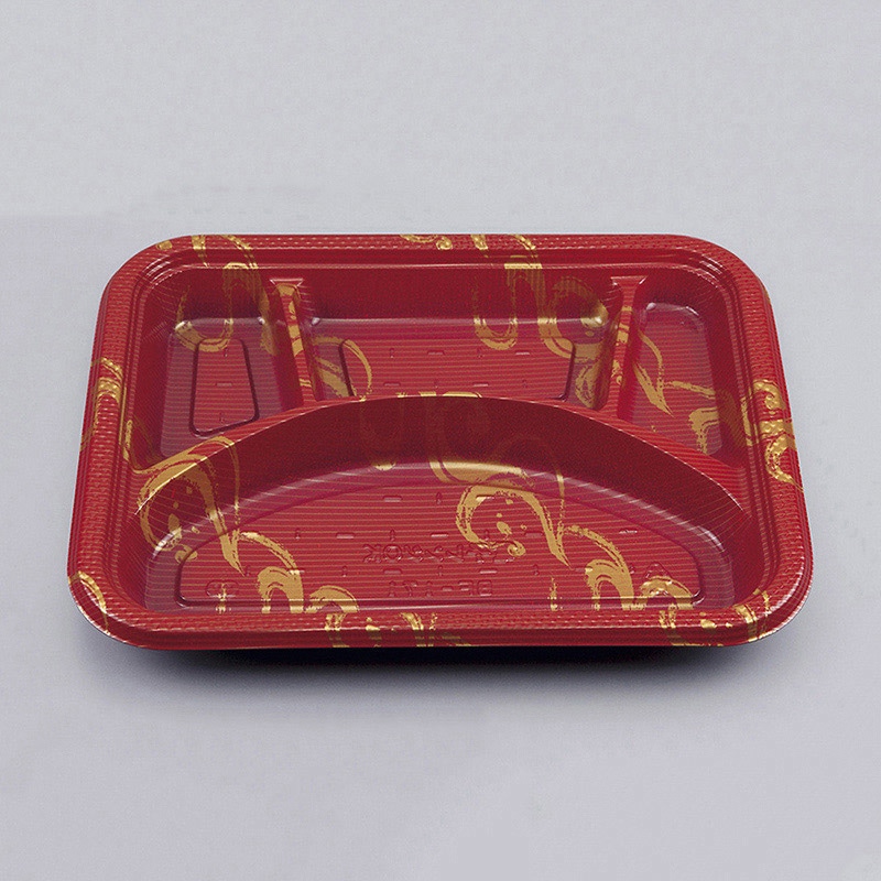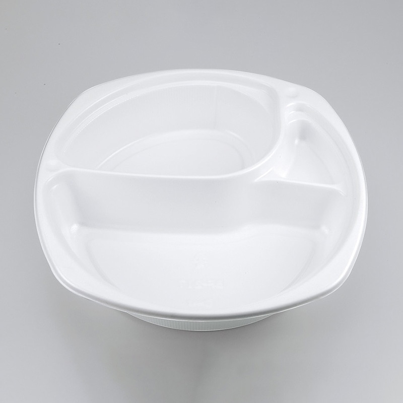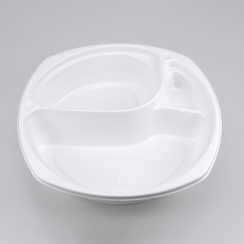 低発泡ポリスチレン製のカレー容器です。3仕切り。外嵌合蓋「BF-217嵌合蓋」は別売です。●電子レンジ使用可●耐熱温度:105℃●ごはんの量:約550g/ルーの量:470cc●入数:50枚