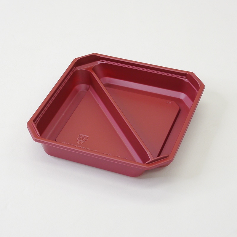 ワンタッチで組み立てられる3パーツ構造の折箱の「底(ソコ)」です。「縁(フチ)」「蓋(フタ)」をパーツ別にオーダーできるので、機能・カラー・デザインなどを簡単に組み合わせできます。また、完成品に比べ、ストックスペースが約半分になります。使いやすい定番サイズ。2仕切りタイプ。●電子レンジ使用可●耐油性:なし●耐熱温度:95℃●ごはんの量:約250g●入数:50枚