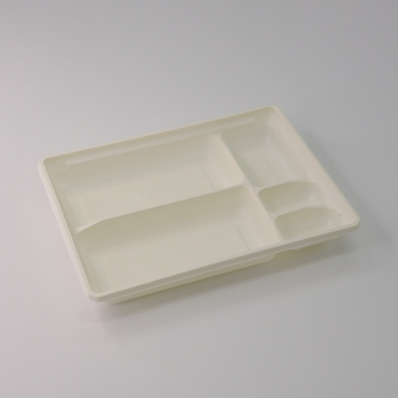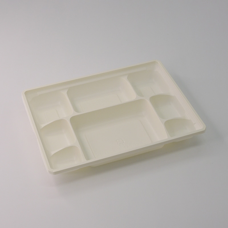 ワンタッチで組み立てられる3パーツ構造の折箱の「底(ソコ)」です。「縁(フチ)」「蓋(フタ)」をパーツ別にオーダーできるので、機能・カラー・デザインなどを簡単に組み合わせできます。また、完成品に比べ、ストックスペースが約半分になります。使いやすい定番サイズの弁当。4仕切りタイプ。●電子レンジ使用可●耐油性:なし●耐熱温度:95℃●ごはんの量:約140g●入数:50枚