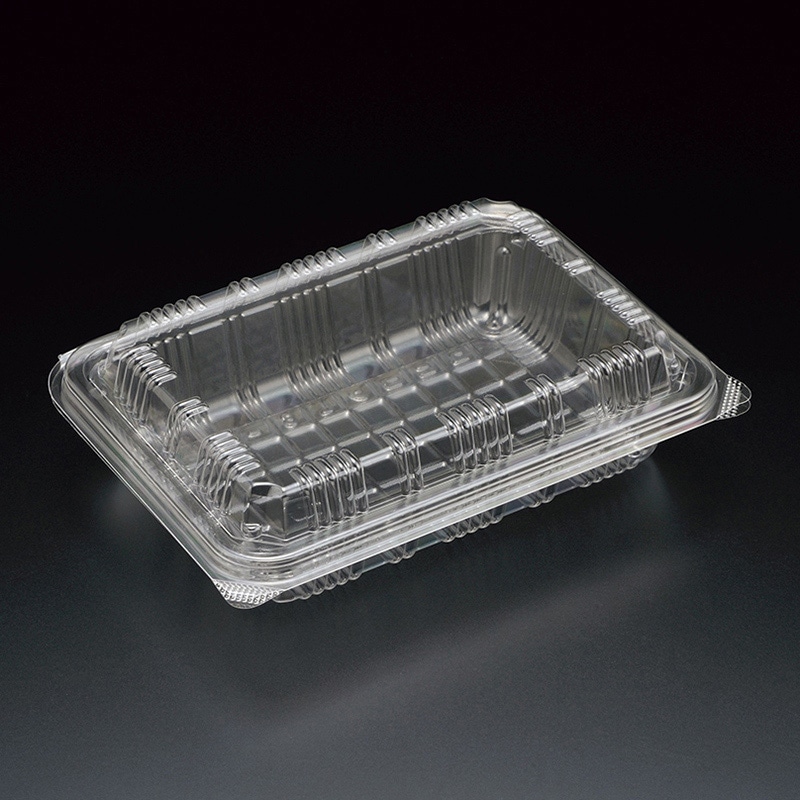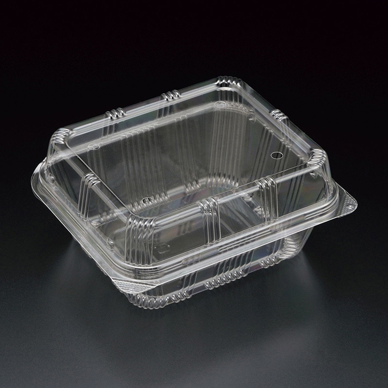 本体・蓋一体型の嵌合容器です。蓋をする手間を大幅に軽減します。蓋天面に通気孔有り。ミニトマト向け。●電子レンジ使用不可●オーブン使用不可●耐熱温度:90℃●容量:300cc●ミニトマト容量:約240g●入数:100枚