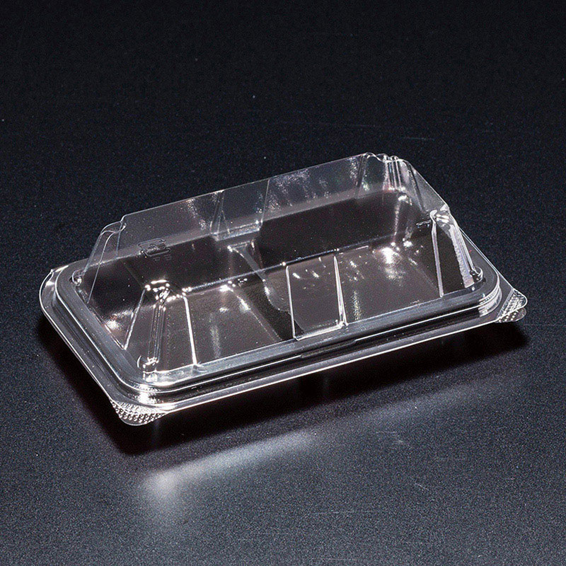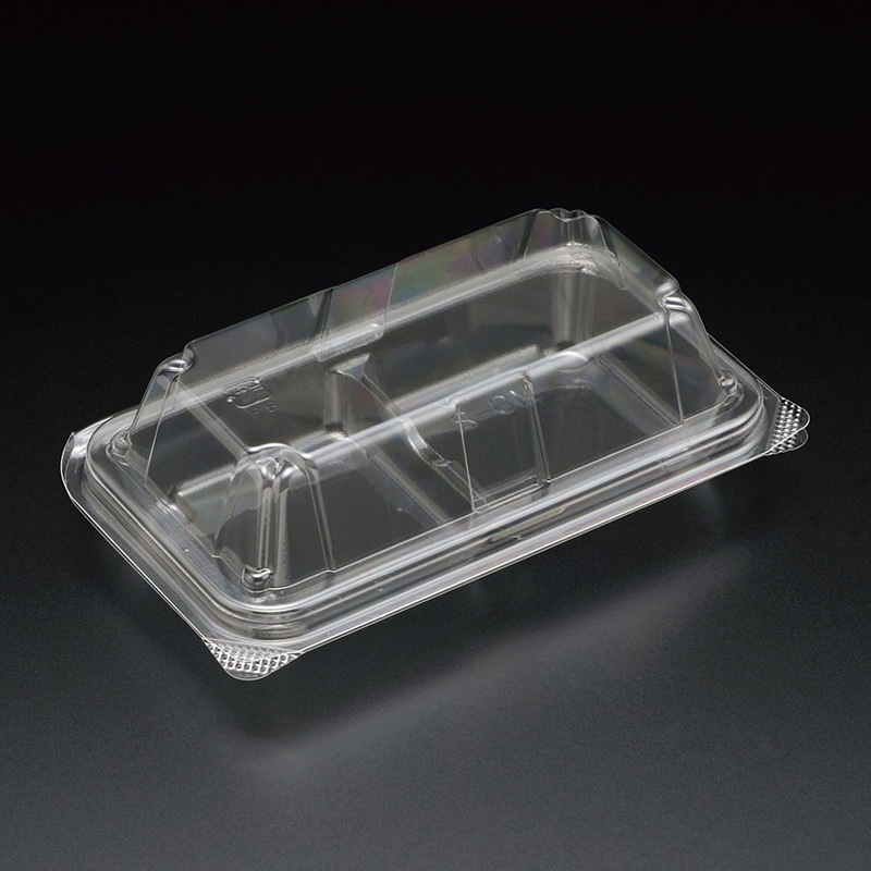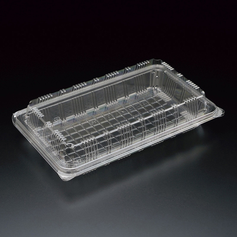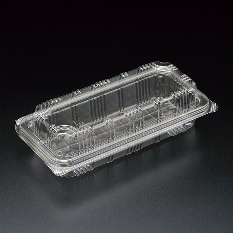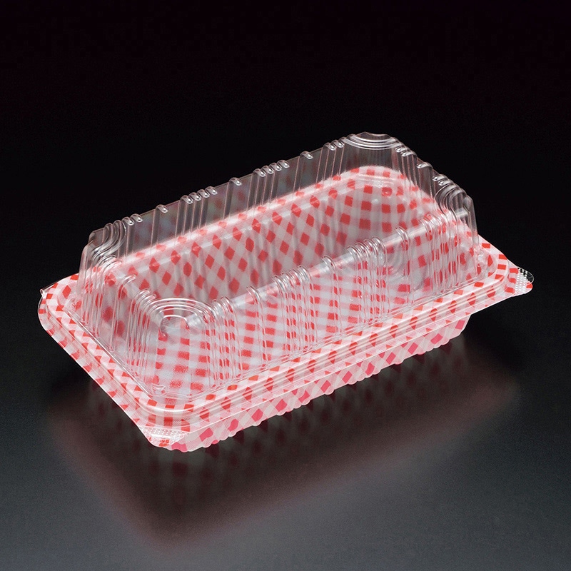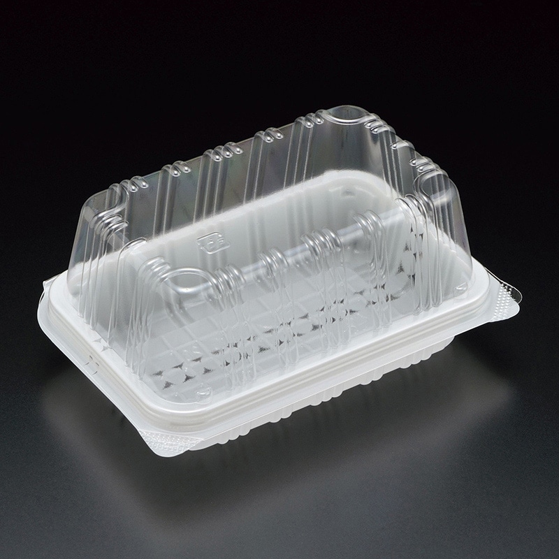 本体・蓋一体型の嵌合容器です。サンドイッチ、ロールケーキ、または巻寿司1本などに。●電子レンジ使用不可●オーブン使用不可●耐熱温度:90℃●容量:230cc●入数:50枚