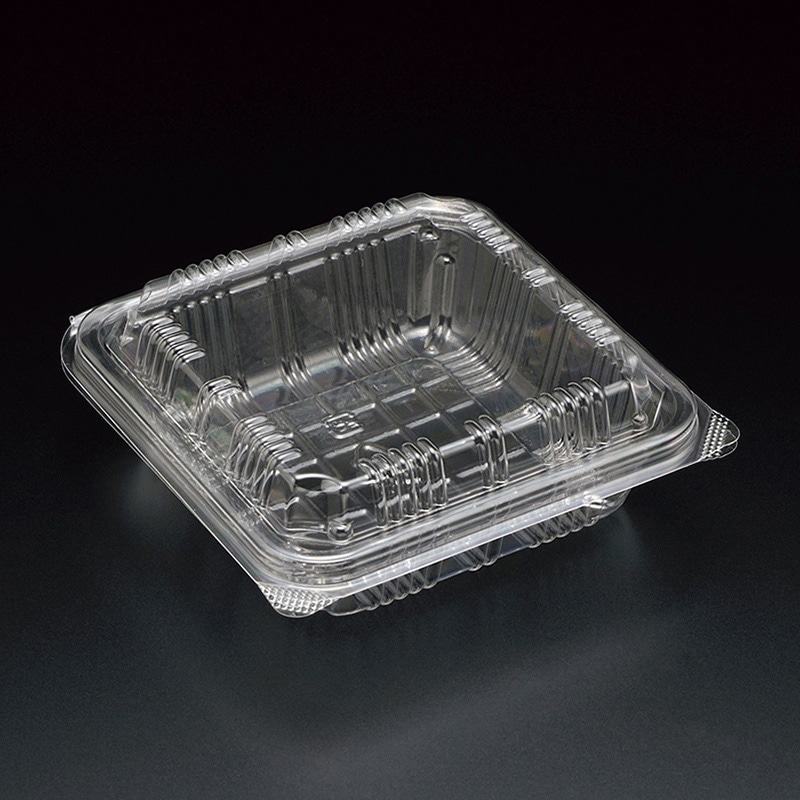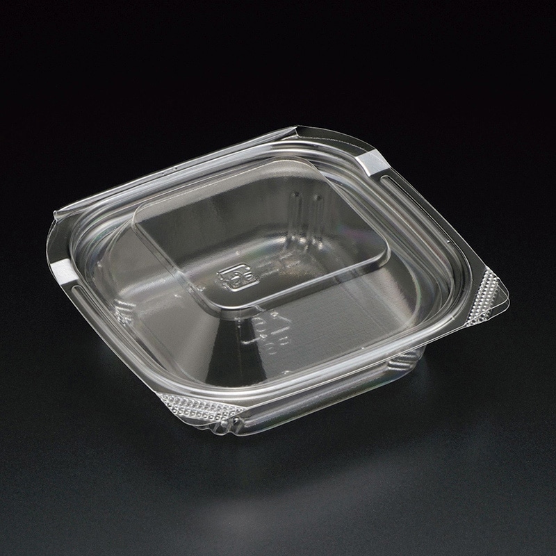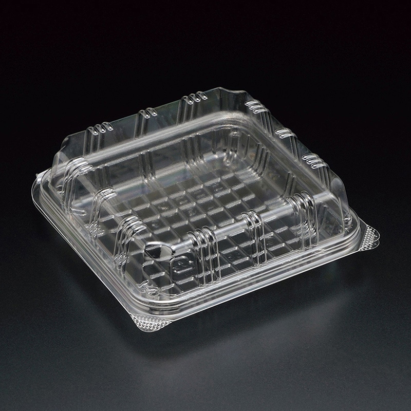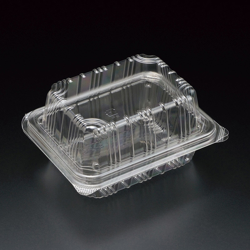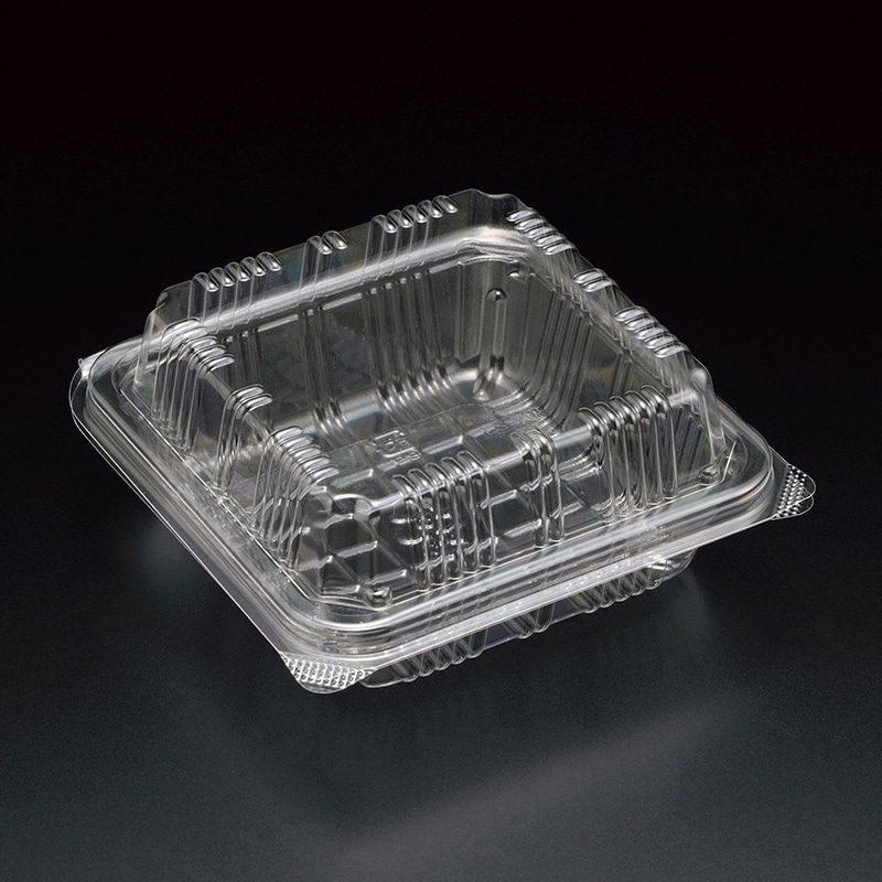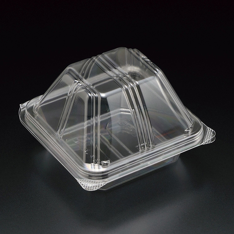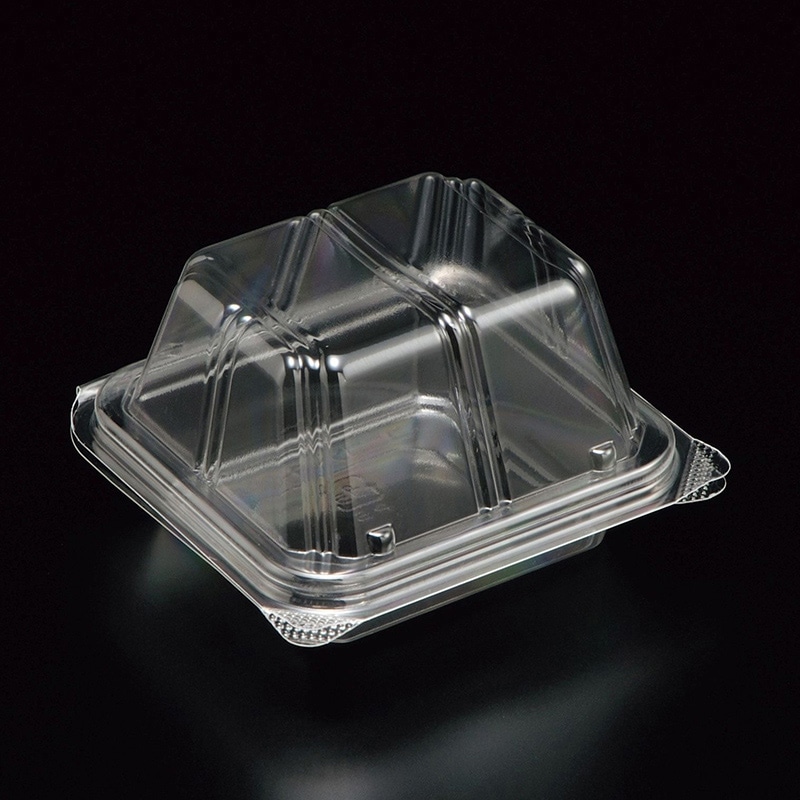 ハンバーガーやケーキなど高さのある商品に最適な容器です。様々な用途に使用できます。本体・フタ一体成型品です。●電子レンジ使用不可●オーブン使用不可●耐油性:なし●耐熱温度:80℃●入数:100個